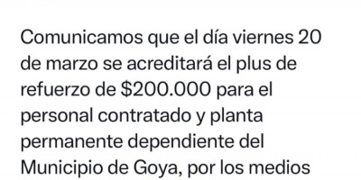 Intendente Mariano Hormaechea anunció el pago del plus de $200.000