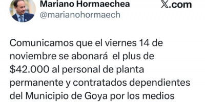 El Municipio de Goya abonará este Viernes el Plus de $42.000 a empleados municipales