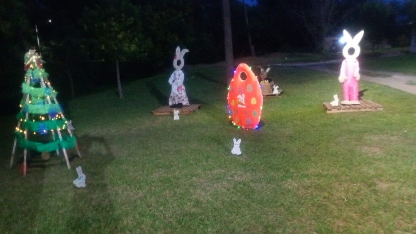 Las Mujeres Emprendedoras que desarrollan sus actividades y capacitación en la Biblioteca Marta Elgul de París, junto a la comisión del barrio, como todos los años recrean el espacio público de ese sector de la ciudad, con elementos motivados en la Pascua de Resurrección.