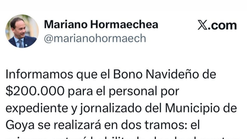 El intendente municipal doctor Mariano Hormaechea anunció en la mañana de este lunes para el personal por Expedientes y Jornalizados el Bono Navideño de 200.000 pesos en el que se efectivizará en dos tramos.