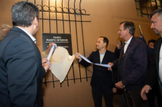 El intendente Mariano Hormaechea junto al prefecto Marcelo Regondi, el obispo de la Diócesis Monseñor Adolfo Canecin y la profesora Margarita Fogantini, procedieron al descubrimiento de la placa que deja habilitado este renovado espacio en la Prefectura de Goya.