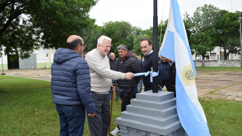 Los trabajos de construcción y colocación del nuevo mástil estuvieron a cargo de la Secretaría de Obras y Servicios Públicos, tarea que llevó adelante el operario Carlos Gómez, personal municipal del área mencionada, recibió un reconocimiento, como muestra del sincero agradecimiento del CPEF, la entrega a cargo del profesor Máximo Oviedo acompañado por el intendente Mariano Hormaechea.