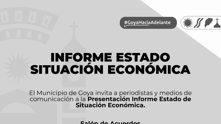 La Municipalidad de Goya invita a periodistas y medios de comunicación a la Presentación Informe Estado de Situación Económica que se llevará a cabo este jueves 16 en el Salón de Acuerdos del palacio municipal a las 11 horas.