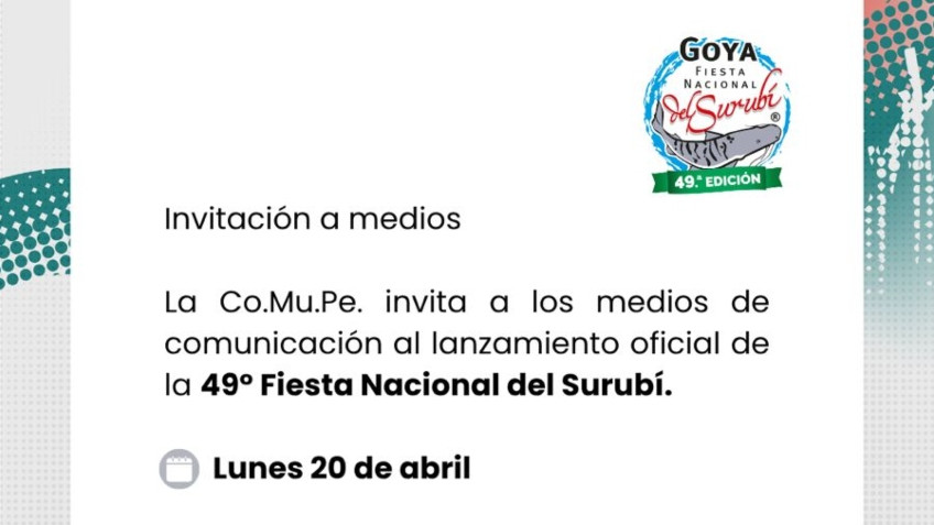 La Comisión Municipal de Pesca (Co.Mu.Pe.) invita a periodistas y medios de comunicación a la cobertura del lanzamiento oficial de la 49° Fiesta Nacional del Surubí, uno de los eventos más representativos de la ciudad y de la región.