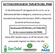 El día miércoles 7 de agosto de 9:00 a 12:00 en la biblioteca del barrio Belgrano, estaremos junto a la Secretaría de Desarrollo Humano, PAMI y Desarrollo Social de la Provincia realizando entregas y activación de la nueva tarjeta del PAMI.
