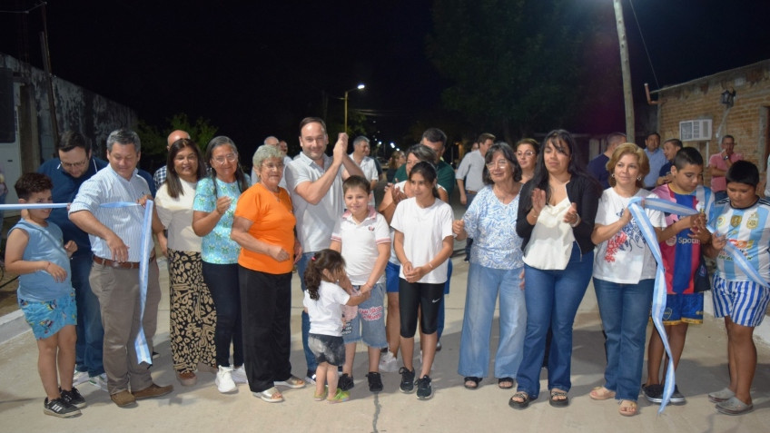 En la noche del jueves, el intendente Mariano Hormaechea presidió una nueva inauguración de cuadra de pavimento en hormigón armado, en el barrio Scófano, calle San Juan, entre Blas Luccioni y Juan XXIII.