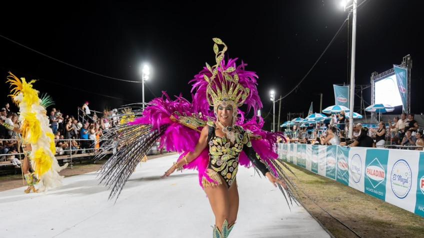 Una de las bailarinas de ARAMI, Celeste Chamorro cuenta al equipo periodístico de la trasmisión de los corsos oficiales, la experiencia de volver a bailar en la Alfombra Blanca de Costa Surubí.