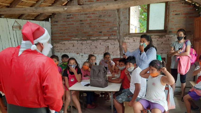 Los niños por su parte, con enrome emoción han recibido la presencia del personaje Papá Noel con los presentes destinados a ellos.