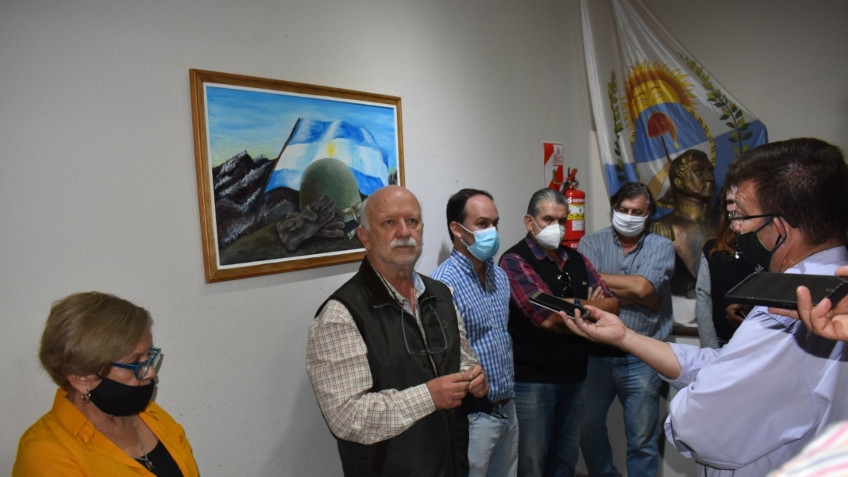 El Intendente Osella expresó: "Solamente decirles a los ex combatientes que este es mi último acto del 2 de abril y la pandemia nos impidió el recordar el año pasado como queríamos y este año también. Y cuando Rosa Turiot me dijo que tenía el cuadro y que lo iba a dar a los ex combatientes le dije: "antes expongamos en un lugar especial, público, con mucho movimiento. Para nosotros es importante recordar lo que fue la gesta de Malvinas. Rosa accedió inmediatamente, por eso tenemos el cuadro. Pretendemos siempre, en función de contar con una pinacoteca, por la tradición de realizar concursos de pintura, que la Municipalidad sea un verdadero Museo Abierto a la sociedad, donde hay distintas obras y cuando vi la obra, más me gustó, más le insistí y ella accedió", reveló.