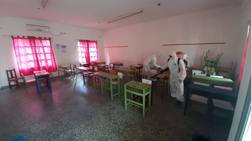 Personal de Dirección de Deportes, realizó desinfecciones preventivas en distintos establecimientos de la ciudad: en el Jardín: E.J.I.N.°27 Situado en el Barrio Sagrado Corazón de Jesús; Pasaje Juana de Arco al lado de la Escuela Primaria N°370, frente del Jardín El Colegio Secundario Sagrado Corazón de Jesús.