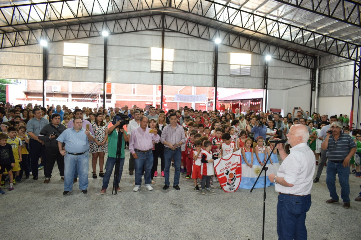 El Intendente de la Municipalidad de Goya, Lic. Ignacio Osella, destaco la presencia de los chicos de todos los clubes, para remarcar el club no es un deposito, es un lugar para desarrollar actividades y poder encarar trabajos juntos, para agregar: “Que alegría que tenemos el poder inaugurar estas obras, esta obra en el club, nosotros desde que empezamos la gestión estamos acompañando, porque el lugar ideal para que este un niño es un club de barrio, donde se transmite los valores, el compañerismo, el respeto a las reglas, el Fair play, las normas, estos valores se transmiten desde el club, mis felicitaciones al Club Unión, por la enorme labor, acompañado de la gestión del Gobierno, de ”Perucho”, a los padres acompañen a sus hijos, porque se debe dar esto los padres, los clubes, el estado provincial y municipal y juntos poder trabajar, y a todos los clubes que contienen a los niños a los padres no abandonen a sus niños, no depositen en el club, participen en la vida del club:”