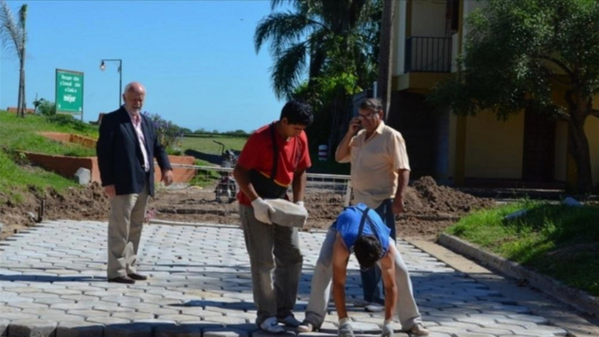 Los trabajos de colocación de los adoquines se llevaron adelante a través de la Cooperativa Flor de Lapacho, que es la fabricante y como parte del programa Mita y Mita, que es un sistema donde los vecinos contribuyen con parte de los recursos necesarios y el resto es aportado por la Municipalidad.