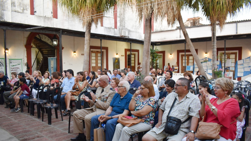El asesor Cultural de la Sociedad de Escritores Filial Goya, Profesor José Erasmo Gauto hizo la presentación y explicación de la mesa de autores, sobre la obra Malvinas: “Este acto cultural esta contextualizado en el marco del Encuentro Nacional en su organización general, cuando Diego Ojeda, uno de los participantes de las reuniones organizativas, me comentaba Ramón nos comentan hasta los pastelitos que iban a disfrutar en esta convocatoria, pero hablemos primero de las otras cuestiones, y esto marca la naturaleza humana, cósmica y los hechos de la historia no pasaría de su trascendencia más allá del tiempo, sino estuviera el arte, el arte de la palabra, de la línea del dibujo, de la plástica, de arte de la amistad, que es propia de la unidad de los propios seres humanos y se convierten en ecos en el sentido de ser sonido de la memoria histórica, este  acto refleja el eco de aquellos hechos trascendentes desde el 2 de abril de 1982, todos los libros reflejan la luz de Malvinas, la gesta heroica de marineros y aviadores, reflejan también el concepto de Nación en armas, que es poner a todo un territorio, sus autoridades y ciudadanos, en situación de enfrentar un  objetivo común, este acompañamiento surge de la historia misma, lo que llamamos causa Malvinas que comienza y continua después del 2 de abril de 1982 y después del 10 de junio de cada año, en el Dia de la Reafirmación de la Soberanía Nacional en territorios del Atlántico Sur, en este patio de las Palmeras, el germen de la cosmogonía guaraní, en este mes azul de los jacarandas, en este mes de la tradición, que no es solamente una vestimenta gauchesca, sino la suma de valores que integra el concepto del Ser Nacional, en este mes del 20 de Noviembre dia  de la Soberanía Nacional, en este lugar, presentamos 10 libros de 7 autores algunos no están presentes, acompañándolos todos, no solamente desde el recuerdo, sino desde el eco de nuestra palabra, de nuestros escritos y de los escritos de los propios protagonistas que tienen un valor adicional y también con las pinturas expuestas al final, de niños que integran la tradición argentina y serán los continuadores de esta causa nacional y latinoamericana, para homenajear desde la SADE y otras instituciones como un gran tributo a autores, a combatientes, a familiares, a esa muchachada temprana, a esa juventud, que a la orilla del destino jugo su última carta apostando por Malvinas.”