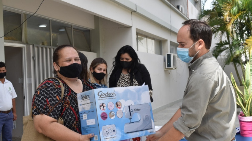 De la entrega de estas herramientas, realizada en el patio del Edificio Municipal situado por calle San Martín, han participado el Secretario de Desarrollo Humano, Dr. Mariano Hormaechea, la Directora de la Caja Municipal de Préstamos, Contadora Lourdes Ojeda y la Directora de Promoción Social, Dra. Sonia Espina.