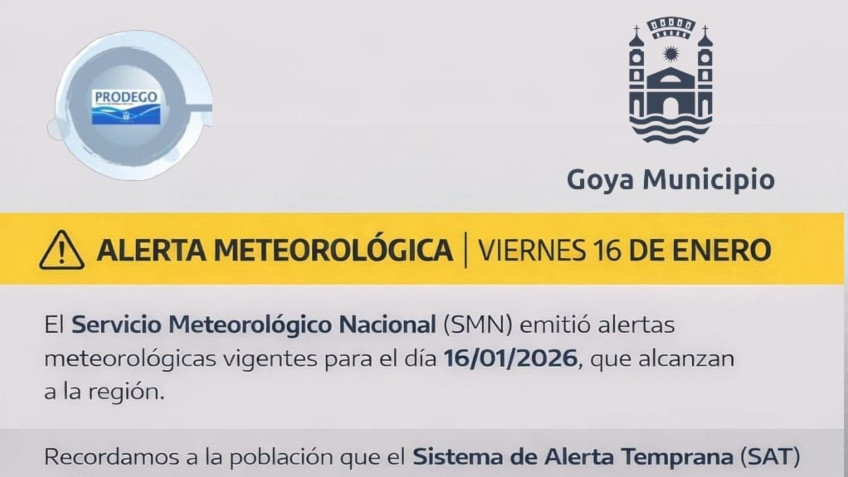 El Servicio Meteorológico Nacional emitió alertas meteorológicas vigentes para el día viernes 16 de enero que alcanzan la región. Recordamos a la población que el sistema de alerta temprana utiliza una escala de colores para indicar el nivel de riesgo.