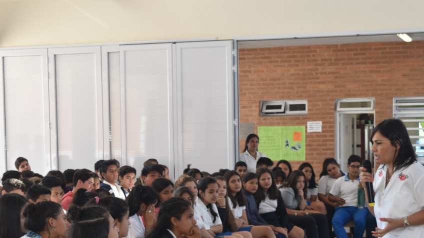 Antes de iniciar la charla, la titular de la Dirección de Promoción Social invitó a los alumnos a realizar todas las preguntas que sean pertinentes. La doctora Diana Córdoba fue la encarga de abrir la ronda de talleres hablando y concientizando sobre la importancia de la salud bucodental.