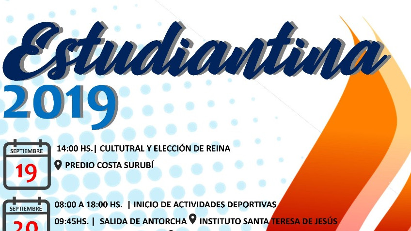 La actividad estudiantil más convocante de la ciudad, declarada de interés municipal y provincial, comenzará el jueves 19 de septiembre a las 14 horas con la competencia cultural, en el predio "Costa Surubí". Será la primera actividad de la edición 2019, donde participarán 3 alumnos de cada institución educativa.