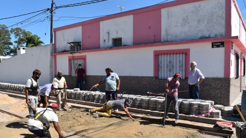 La Secretaría de Obras Públicas coordina los trabajos que contemplan la colocación de 5800 piezas de adoquines fabricadas por la Cooperativa Flor de Lapacho.