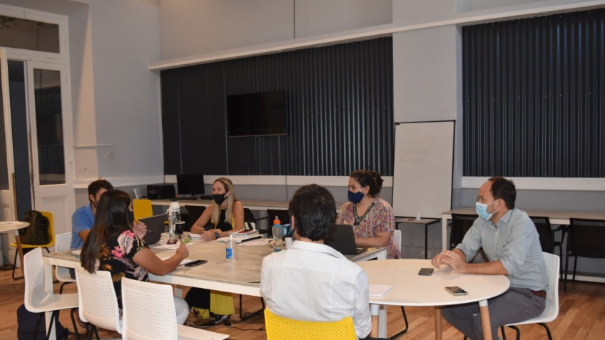 Este lunes en el Club de Emprendedores se reunieron el Secretario de Desarrollo Humano y Promoción Social, Mariano Hormaechea, el Director de Proyectos y Programas, Luciano Rolón, la Directora de Promoción Social, Sonia Espina, e integrantes del equipo del Club de Emprendedores, Francisco Difilippo, Dolores Fondón y Luciana Correa.