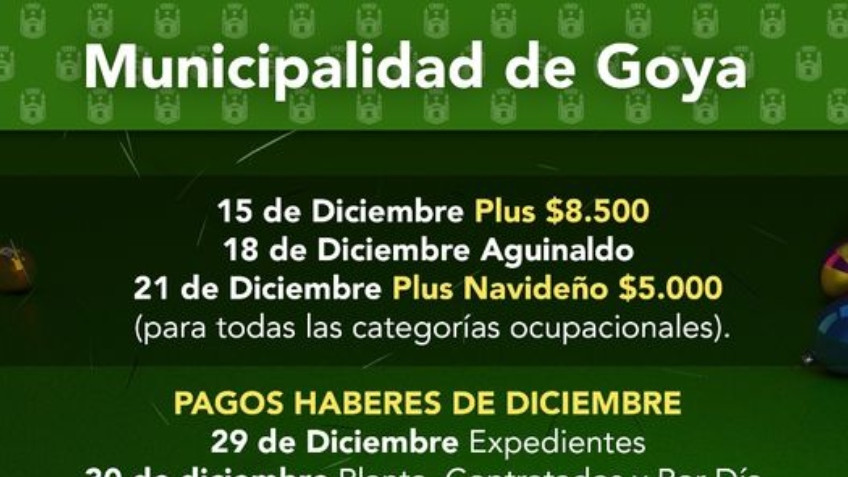 Este martes 15, la Municipalidad abonará el plus ordinario de 8500 pesos correspondientes al mes de diciembre a la totalidad de los empleados de Planta Permanente y Contratados, el cual estará disponible en los lugares habituales de pago.