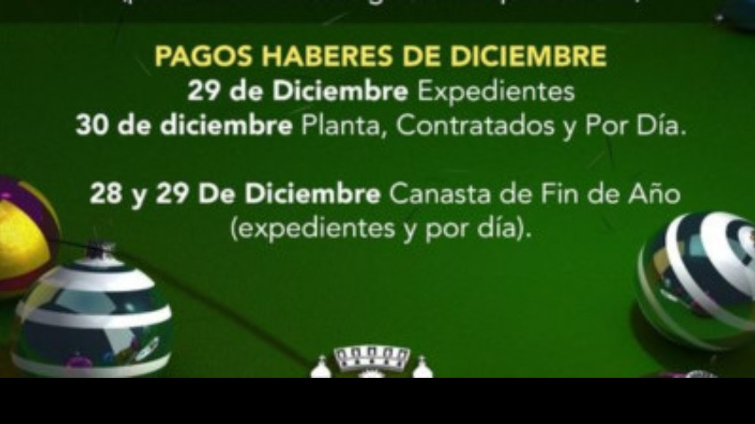 MUNICIPALIDAD PAGARÁ SUELDOS DEL MES DE DICIEMBRE
