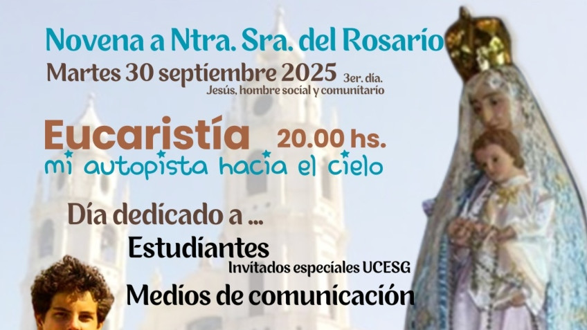 La comunidad de Goya vive con fervor la Novena a Nuestra Señora del Rosario, patrona de la ciudad. Hoy martes 30 de septiembre se celebra el tercer día de Eucaristía a las 20 horas, bajo el lema “Jesús, hombre social y comunitario. Mi autopista hacia el cielo”.