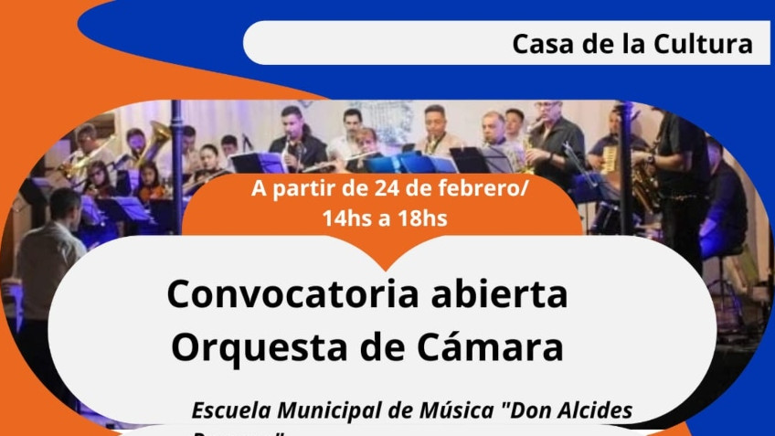 La Escuela Municipal de Música “Don Alcides Romero” invita a la comunidad a sumarse a la Orquesta de Cámara de la referida institución educativa musical. Desde este martes 24 se encuentra abierta la inscripción en la Casa de la Cultura, sede de la Escuela de Música.