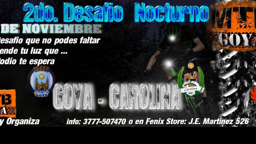 El grupo de MTB Goya, con el auspicio de las Municipalidades de Goya y Carolina, organizan el Segundo Desafío Nocturno en MTB que unirá los dos municipios.