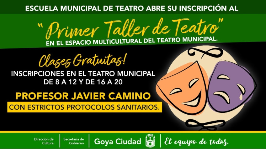 La inscripción para participar en el Primer Taller de Teatro está abierta, los interesados podrán hacerlo en el Teatro Municipal o bien recabar mayor información, en los horarios de 8 a 12 y de 16 a 20.