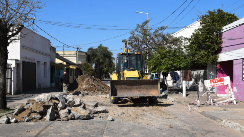 La oficina del PRODEGO trabaja en calle Mitre, entre Agustín P Justo y Entre Ríos, con apertura de un conducto antiguo averiado. Allí se trabaja con la abertura en uniones de caños, reparación y saneamiento del pluvial de hormigón armado de 1.000 mm a lo largo de media calzada. Una vez liberado el conducto, seguirá la reparación con suelo base y hormigón.
