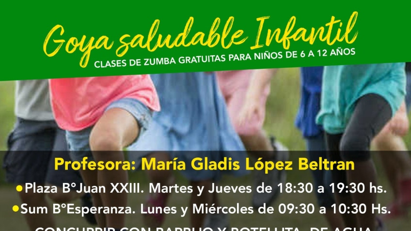 El programa Goya Saludable Infantil se activa desde este 20 y 21 de enero con clases de zumba gratuita para niño de 6 a 12 años en dos puntos de la ciudad.