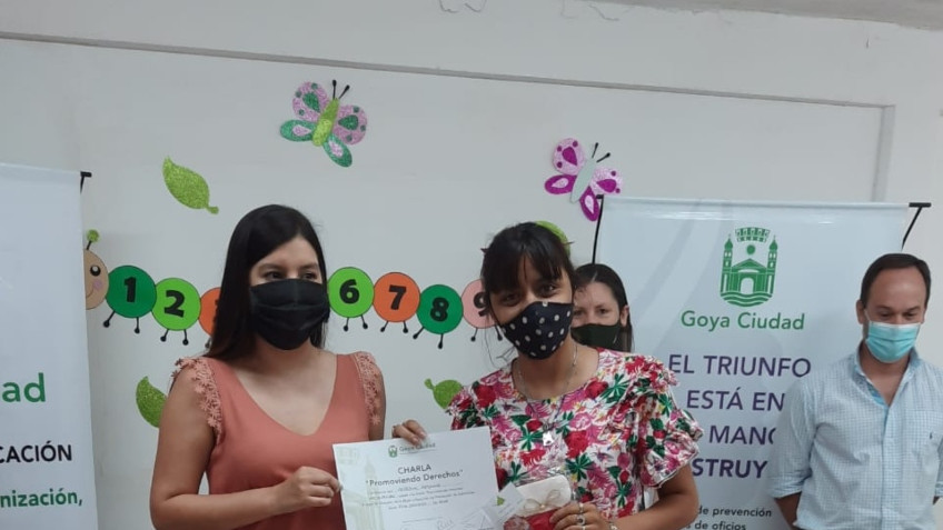 De la entrega de los correspondientes certificados tomaron parte los Secretarios de Desarrollo Humano Dr. Mariano Hormaechea y de Modernización Dr. Diego Goral, junto a las Directoras de Educación Laura Segovia, de Promoción Social Sonia Espina, de la Mujer Mónica Celes y de Prevención Vanesa Morales.