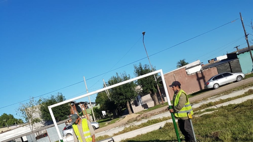 Los trabajos consisten en la colocación de elementos para la práctica deportiva, arreglo e instalación de bancos, limpieza y refacciones en general en los Barrios: Santa Ana; María Reina de la Paz; Costa del Paraná; CGT; Alem y se proseguirá con las restantes de ese sector de la ciudad.