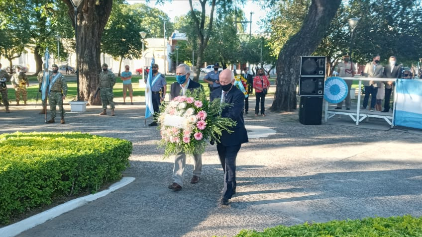 Las ofrendas florales al pie del monumento central Plaza San Martín estuvo a cargo de las autoridades presentes, tanto del municipio como de la Asociación. Se realizó el cántico del Himno al Libertador Gral. San Martín.