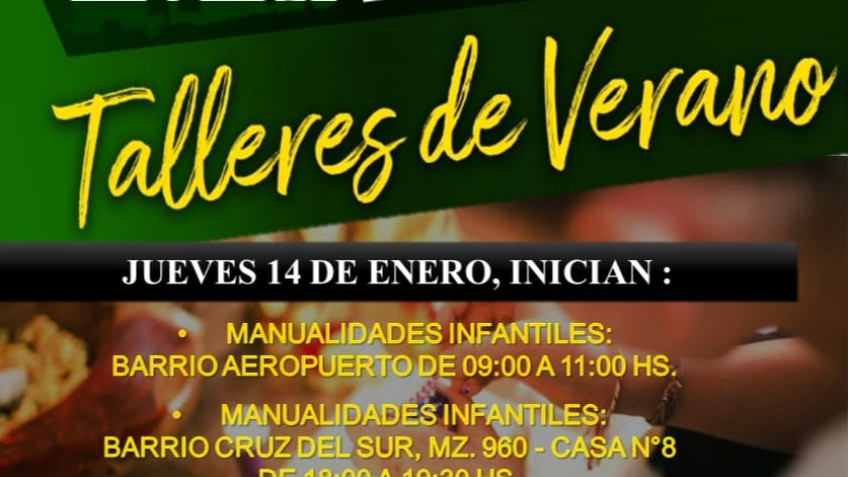 Promovidos por la Dirección de Promoción Social durante los días jueves 14 y viernes 15 se realizarán los talleres de verano destinados a la población infantil con distintas manualidades y para las personas adultas las capacitaciones en Marroquinería, Muñecas Soft y Arte en Fibrofacil.