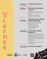 9,10 horas: “ROMEO Y SU NIETA”; del Instituto “Santa Teresa de Jesús”. Dirección: Javier Camino. Duración: 10 minutos. Destinada al público del nivel primario.