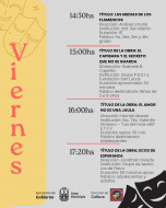 15 horas: “EL CAPIBARA Y EL SECRETO QUE NO SE GUARDA”; de la Fundación “San Lucas” y Grupo PASI. Dirección: Gabriela Capetta. Duración: 30 minutos. Destinada al público de 3 a 8 años.