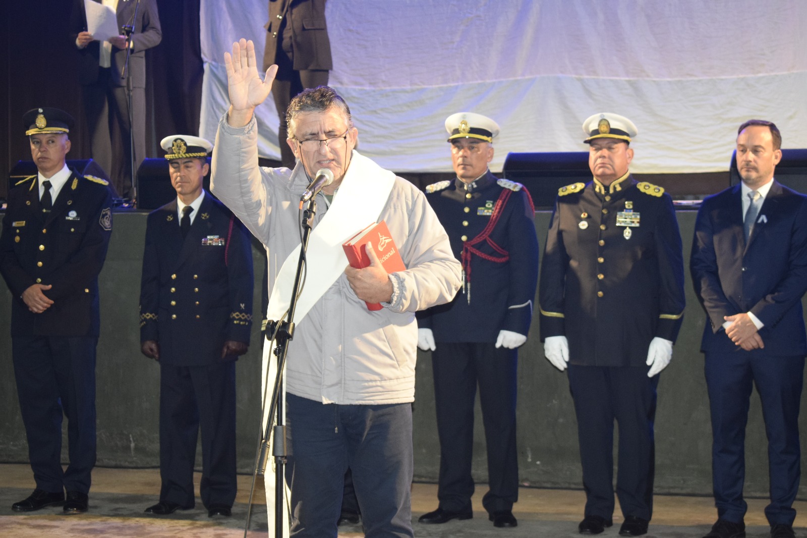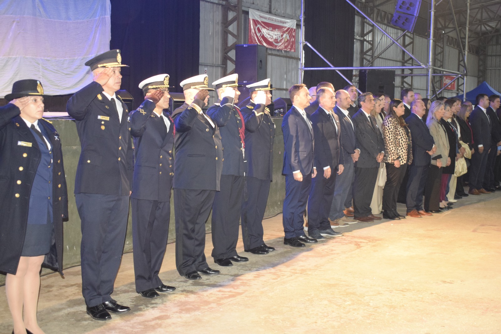 El acto central dio inicio con la entonación de las estrofas del Himno Nacional Argentino, interpretado por la Banda Militar “Puerto Argentino” bajo la Dirección de su Maestro de Banda Teniente 1º Alberto Esteban Córdoba.